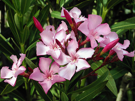 夹竹桃的花瓣、叶片以及果实均含有强心苷。这种物质在某种程度上来说是具有治病效用的,但是如果有人误食了该植物的某个部分,很可能会使其心搏停止。斯图尔特称,加州就有一位妇女因企图用夹竹桃毒杀丈夫被送进监狱死囚区;几年前,有两个男孩儿也因为使用夹竹桃而死亡。她表示:“一般情况下,人们发现这种植物的时候,往往看其花瓣鲜艳、漂亮而放松警惕,但殊不知,这种剧毒植物很可能会使他们丧命。”